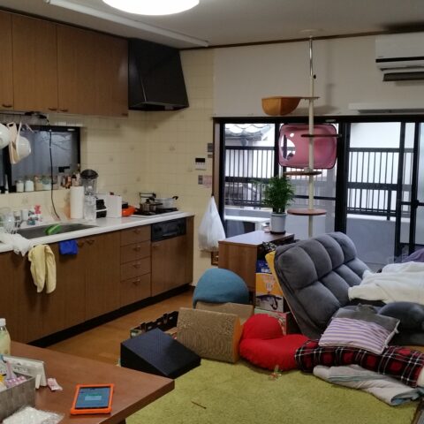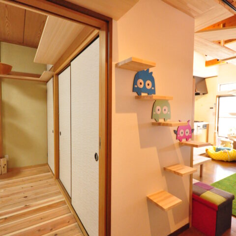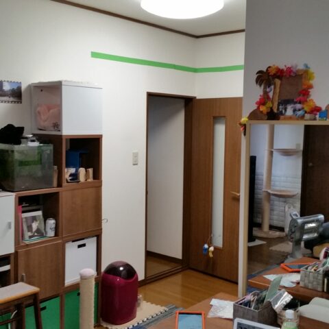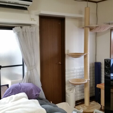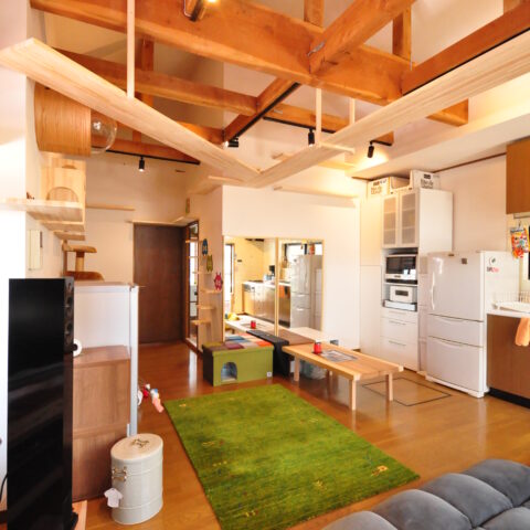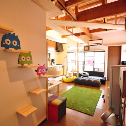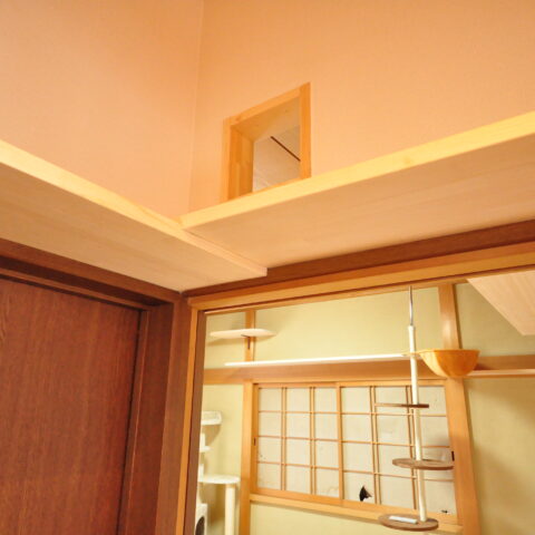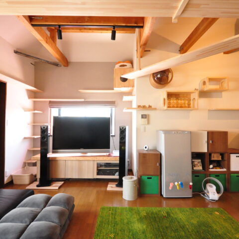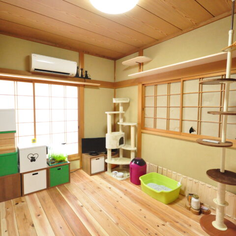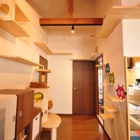 2階にLDKがあるお家で、このLDKと、隣の和室をねこちゃんたちが動き回れる空間へと改装しました。