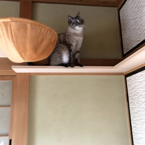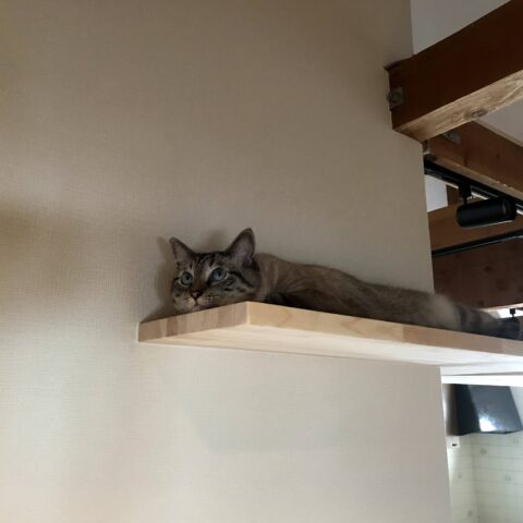 なかなかねこちゃん達が自由に動き回ってくれるところを写真に収める事が出来なかったのですが、普段は梁の上まで自由に行き来してくれているとのことで、今回のリフォームは大成功のようです。施主様に撮影して頂いたねこちゃんの写真。くつろいでくれています!