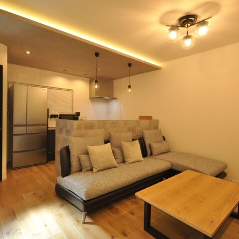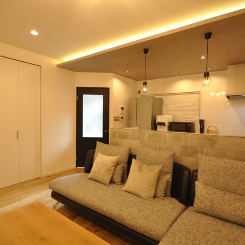 間接照明にもこだわり、Y様の家具のセンスも抜群で、贅沢でくつろげるホテルのような部屋になりました。