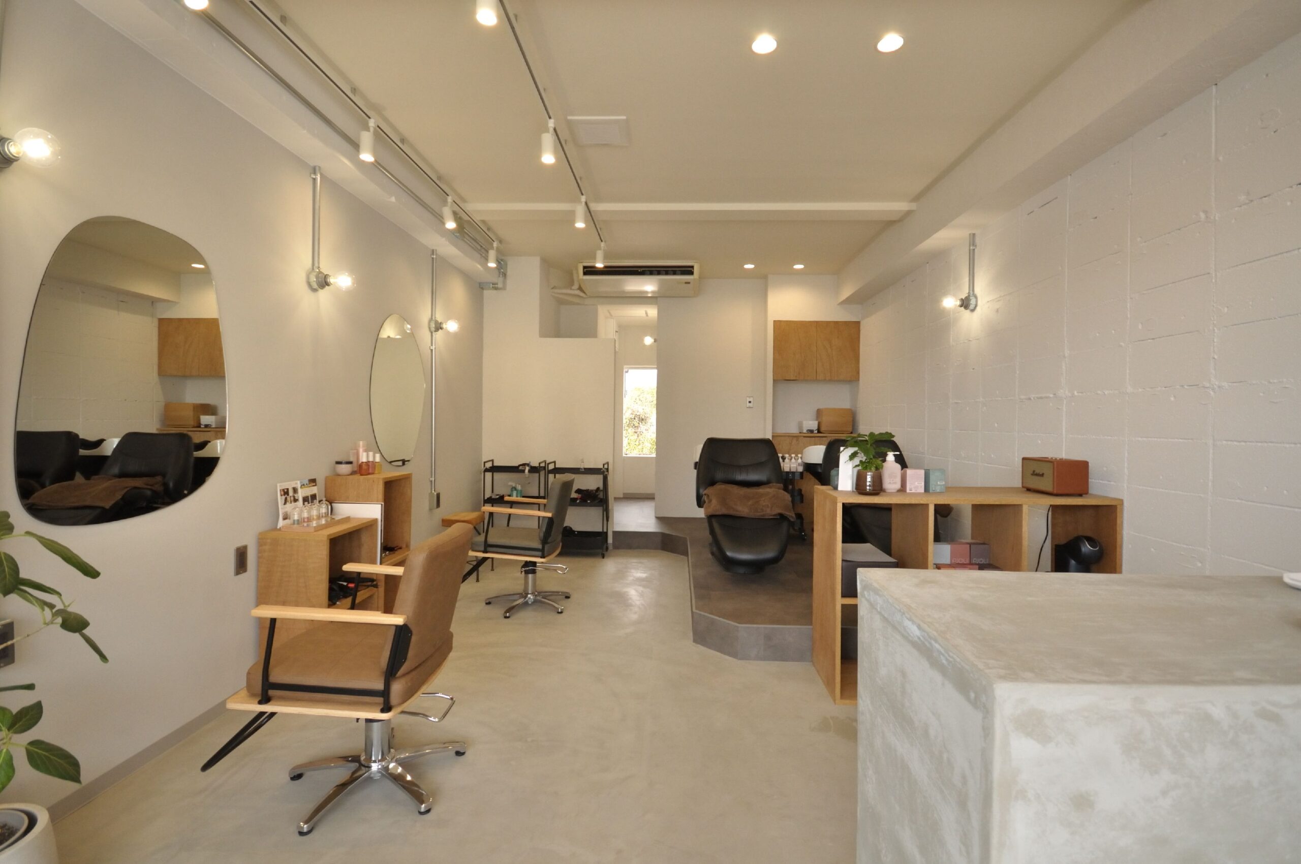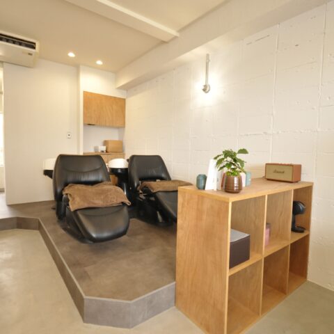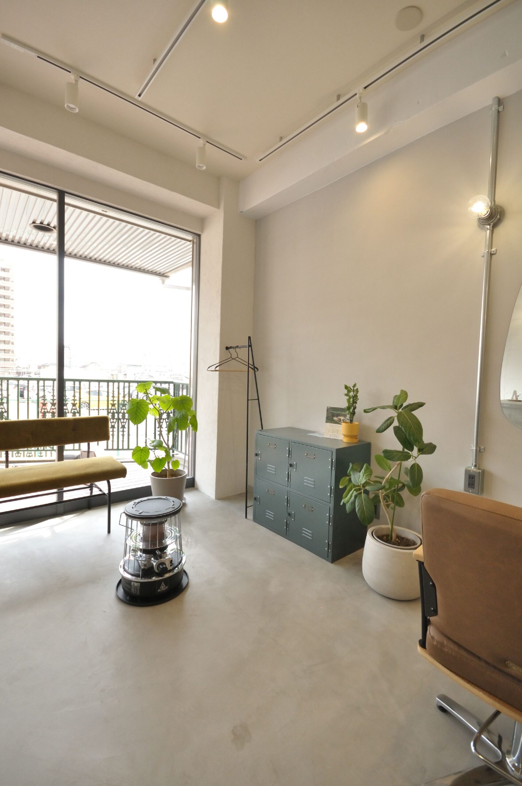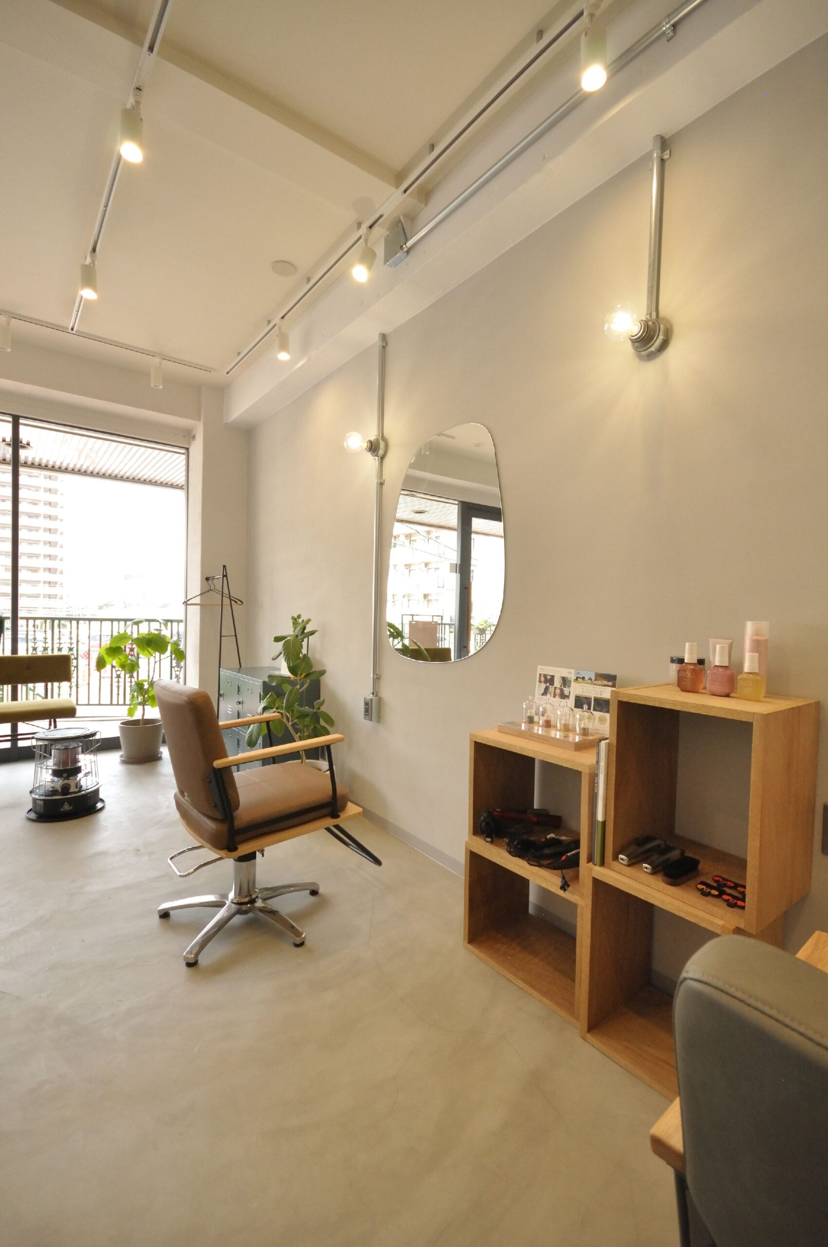 以前ご自宅を工事させて頂いたお客様が独立開業されるとのことで、プライベートサロンを作るお手伝いをさせて頂きました。 限られた空間の中で、明るく広々と使える様、配置や使用する素材等お打合せをさせて頂きました。 隣との境界の壁になっているブロック塀はそのまま活かして白く塗装。あえて鉄管を使用した照明たち。モルタル仕上げのレジカウンター。自由に組み替えが出来る造作の飾り棚。たくさんのこだわりが詰まった素敵なプライベートサロンが出来上がりました。