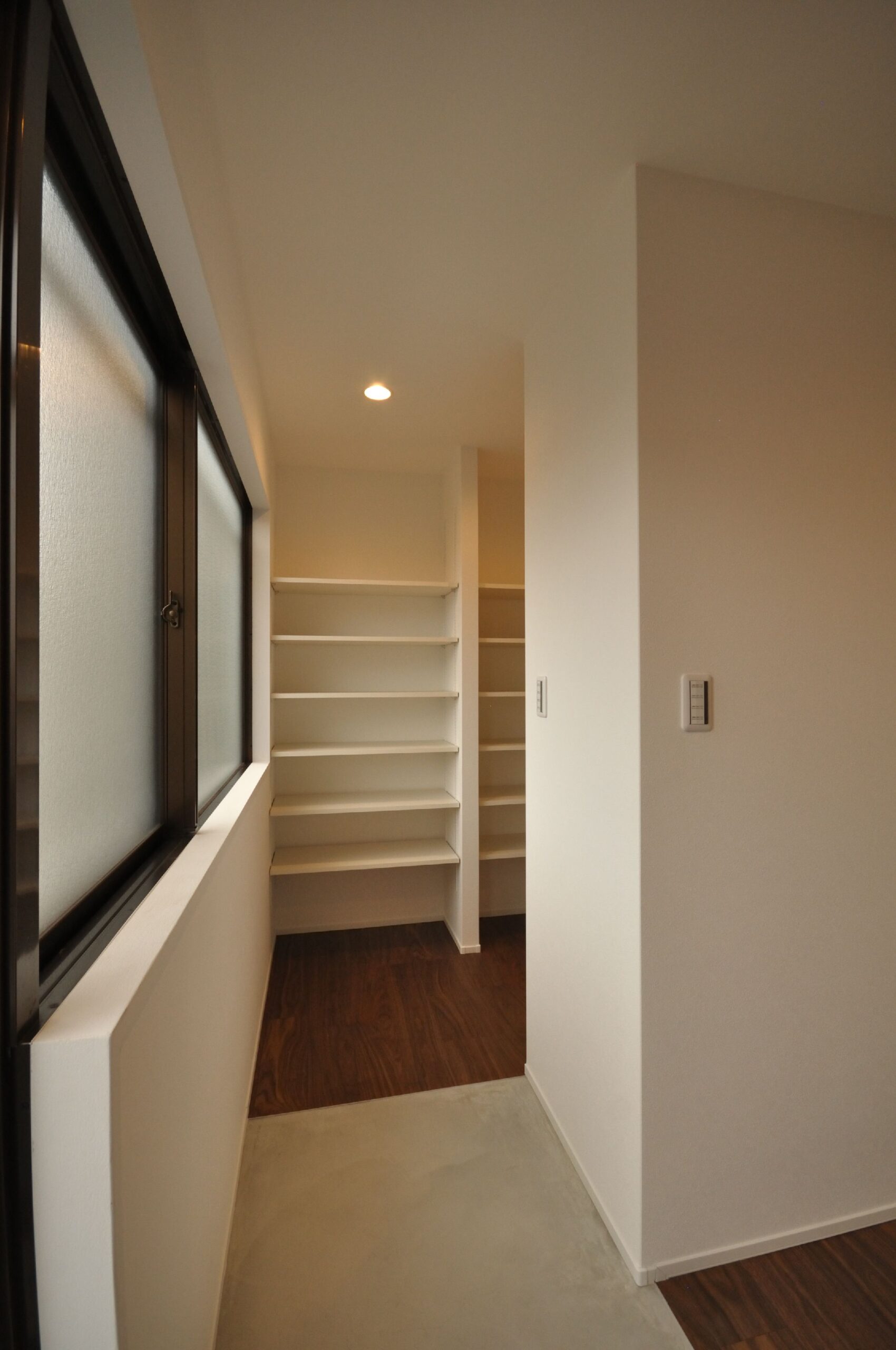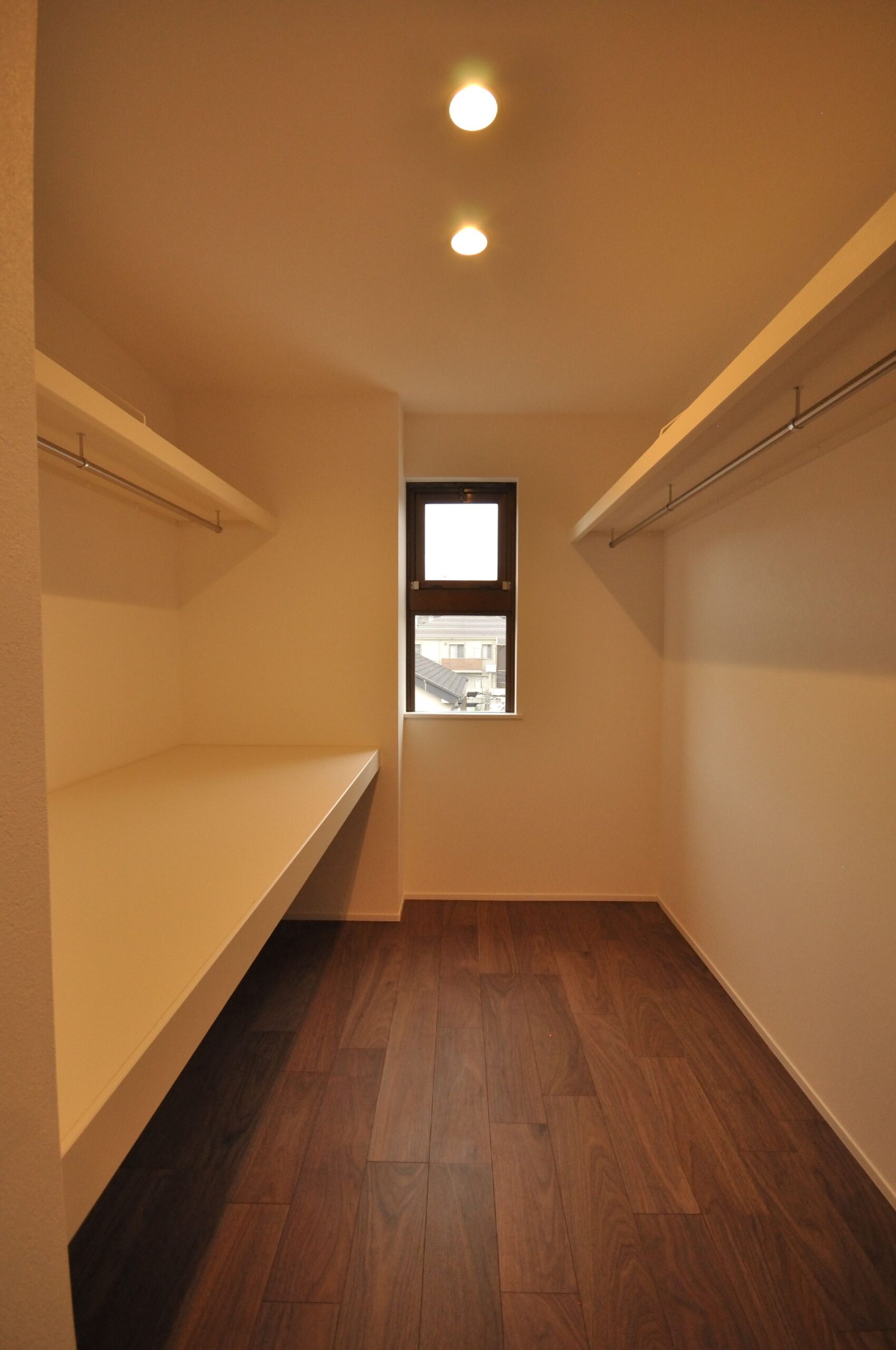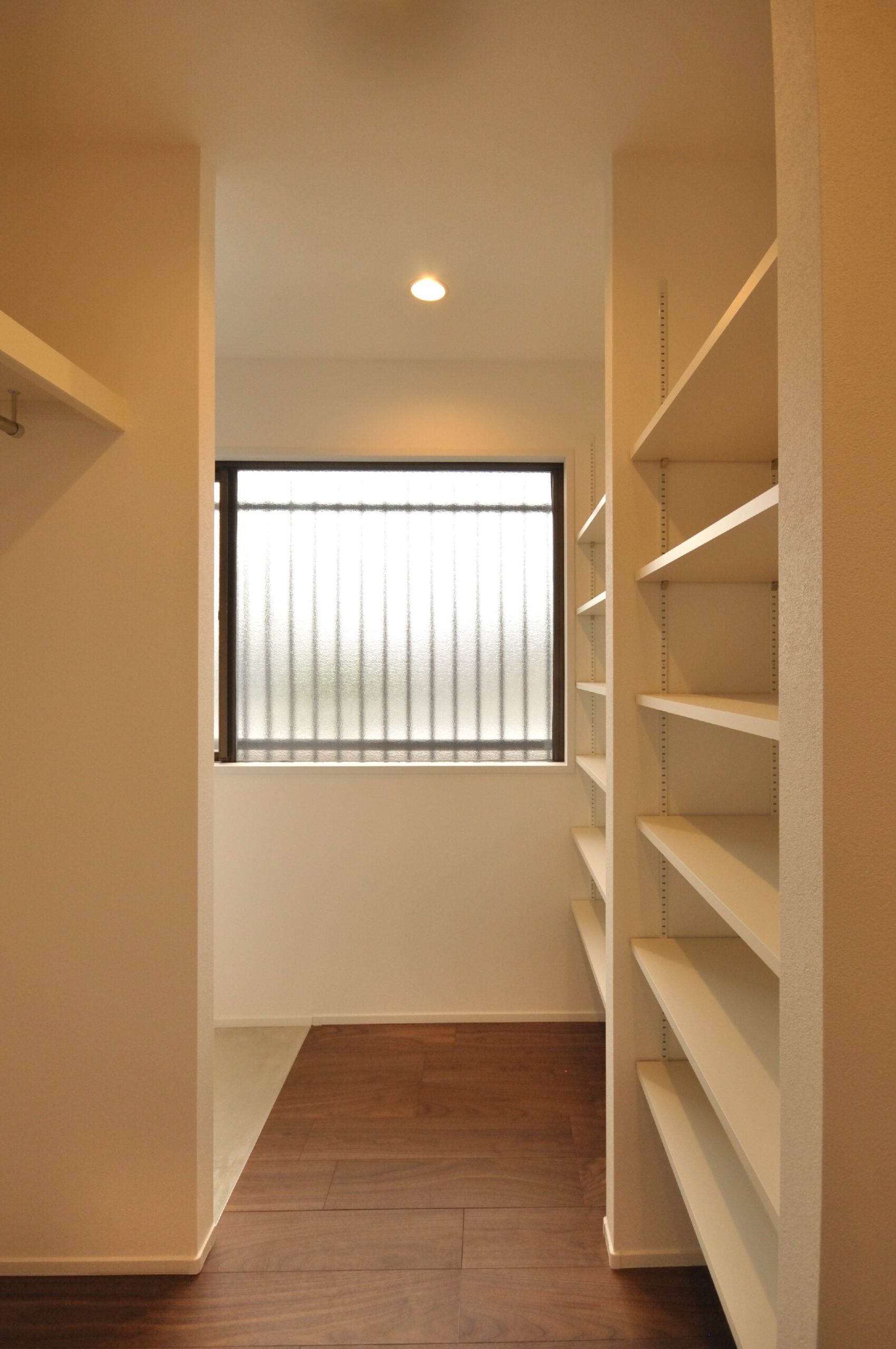 寝室には仕事でも使える広々としたデスクと収納を設置しました。収納にもこだわり、玄関横のシューズクローゼットや、家族の衣服や布団も収納出来る大容量のファミリークローゼット、キッチンの後ろの扉を開けると、パントリー兼ランドリースペースもあります。