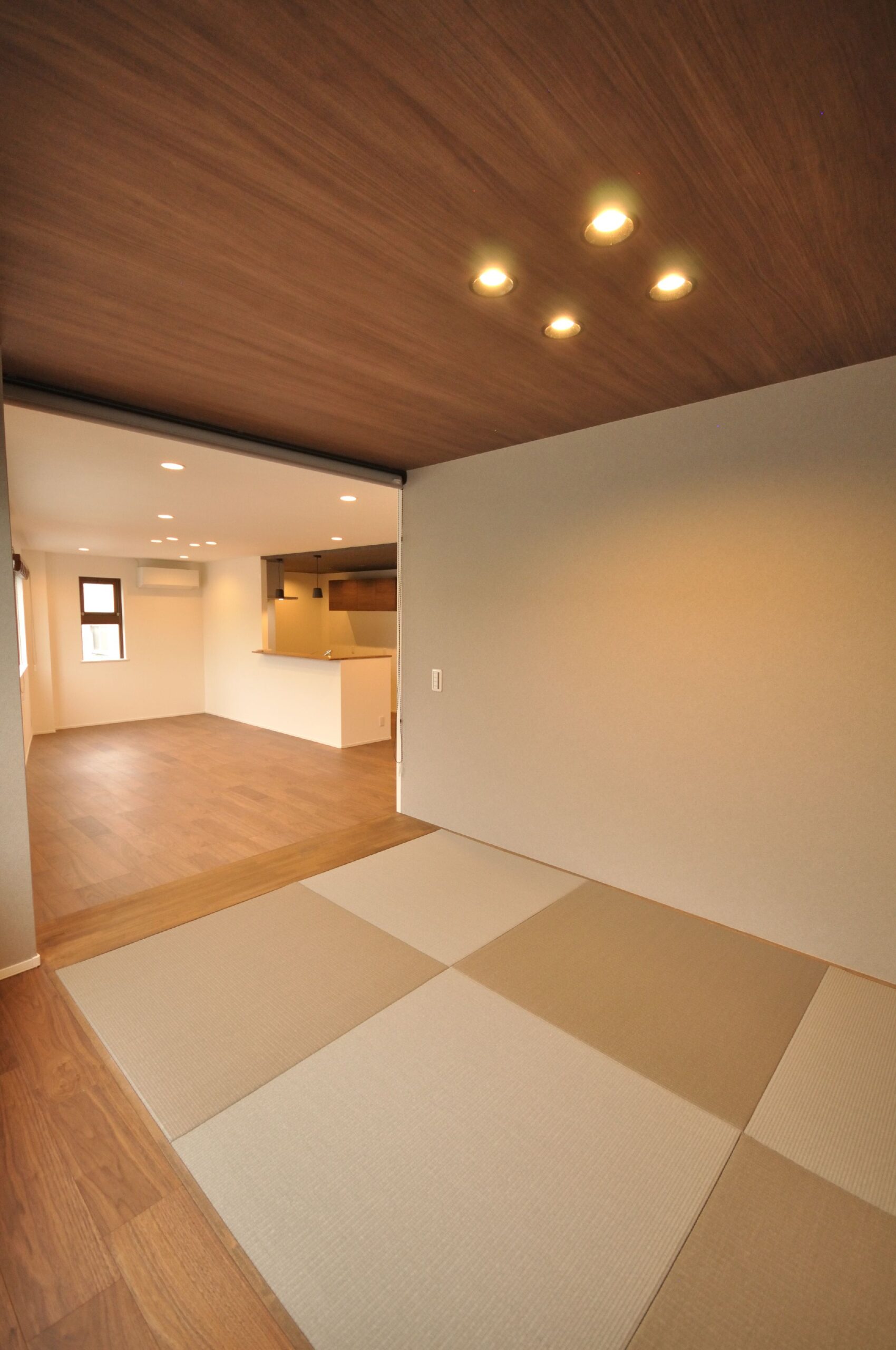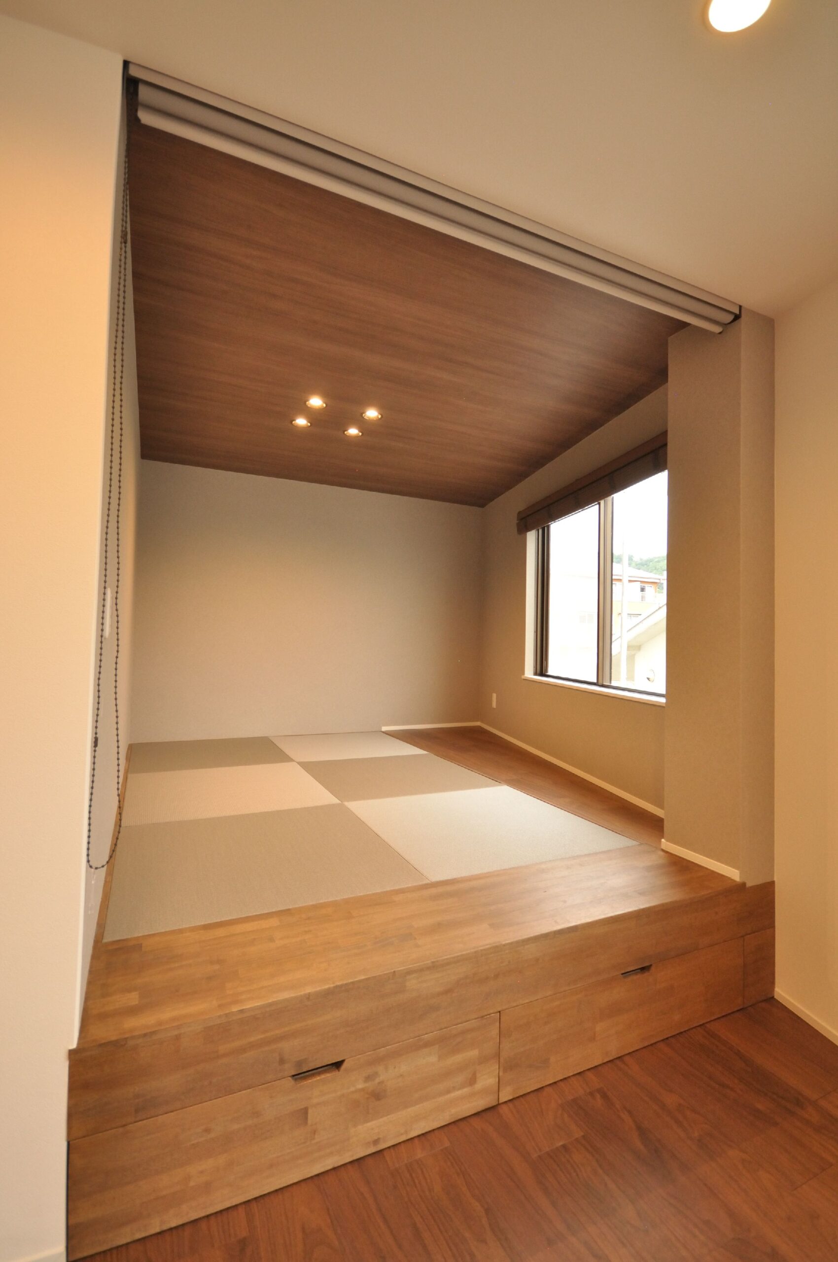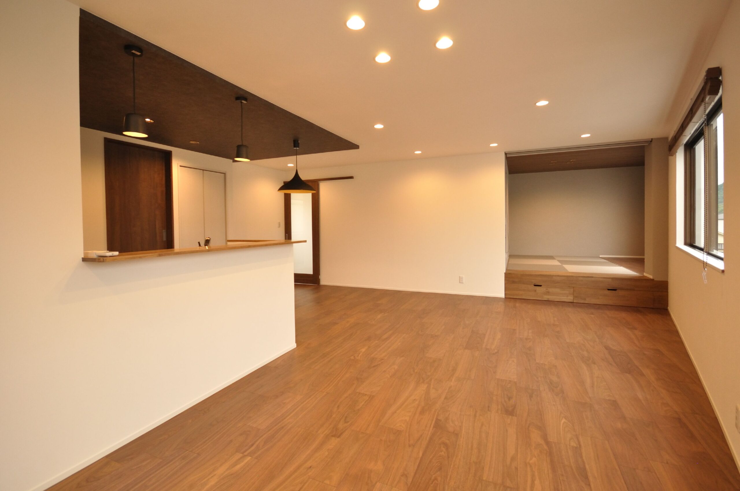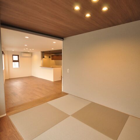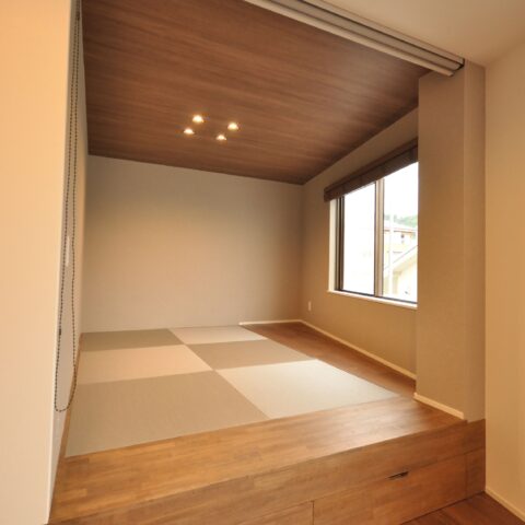 奥様からのリクエストであった、小上がりの和室は来客時やお昼寝など、自由に活用して頂けます。小上がりの下は大容量の収納になっています。
